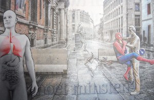 2020Werk omtrent de coronaperiode. Het vervreemdingseffect, de verlatenheid van de straten, wantrouwen tussen de mensen, toenemende agressie van sommigen.