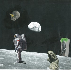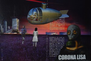 2022Werk dat ik gemaakt heb als reactie op de Corona Pandemie. waarbij ik Mona Lisa geplaatst heb in een futuristisch landschap.