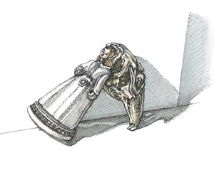 Mijn fantasie omtrent poppetjes in pen en aquarel.