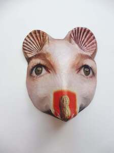 Mijn maskers, beplakt met tijdschriftenmateriaal en daarna beschilderd