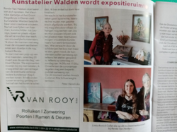 Publicatie over mijn tentoonstelling in Galerij Walden te Ekeren waar ook anderen exposeren. Op de foto staan ik en Renée van Hekken. De schilderijen en poppetjes zijn mijn werk.