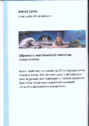 Boekje bij tentoonstelling omtrent Odysseus. Pagina met afbeelding van een collage die ik gemaakt heb en uitleg die ik daarover schreef voor in het boekje van deze tentoonstelling.