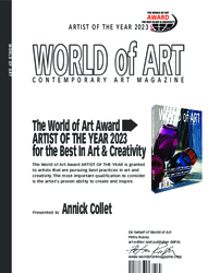 Ik ontving dit document van Petru Russu 10 sept 2023. Hij schreef " This is not about a competition. As your works were featered in several issues of World of Art magazine, we are delighted to inform you that you have been selected as the World of Art ARTIST OF THE YEAR 2023 Award ( Diploma) for the best in Art & Creativity. This is a recognition of your outstanding works and your unique artistic style. Your inspiration and vision have captivated us and many others who appreciate the beauty and meaning of art. We look forward to hearing from you soon."